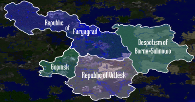 Faryagrad, Republic of - capital region of the Ruminean Union and Winduzastikan Federation, joined Federation along with Anhud. Was abandoned quite for a while, but still was changed and polished a little bit in July-August 2017 and up to the present. Is the cultural center of the federation.